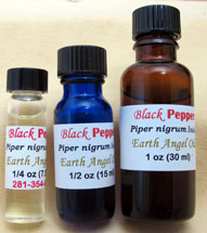 Warming energizing antispasmodic, anti-inflammatory Black Pepper Oil oxygenates cells and relieves bronchitis, rheumatoid arthritis, aching muscles, nervous fatigue, bruises.